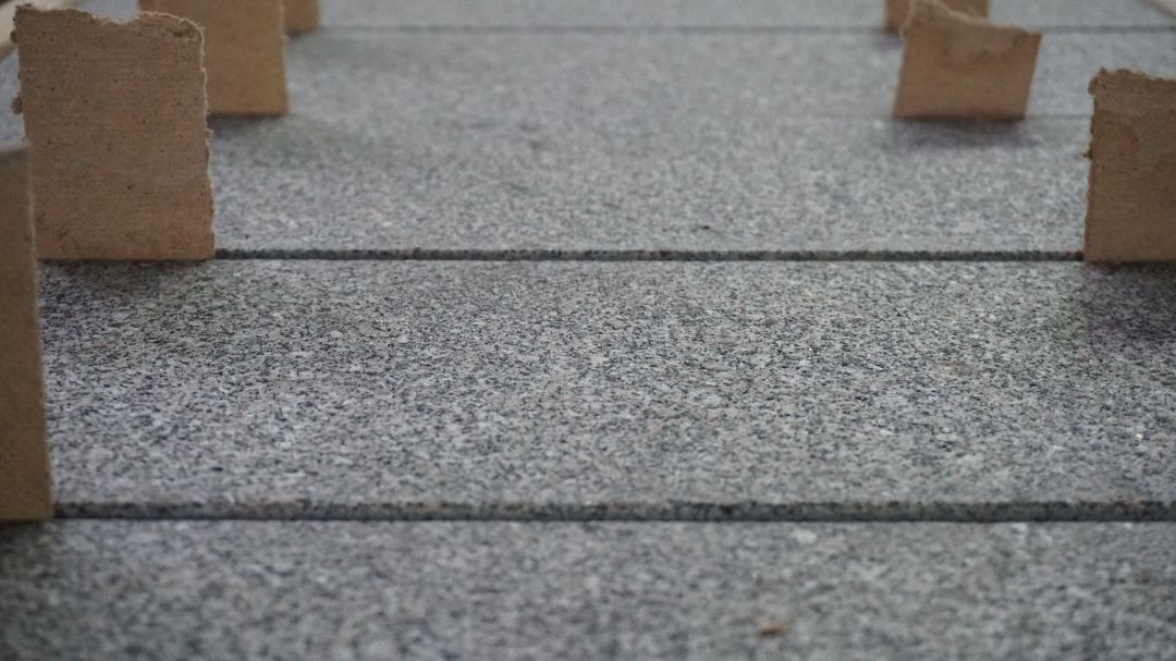 Гранит имеет однородный серый, серо-розовый цвет и мелкозернистую структуру.